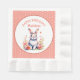 Un petit lapin lapin doux entouré de fleurs roses et coralliennes aquarelle illustration personnalisées serviettes en papier pour fête d'anniversaire pour une petite fille.