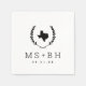 Ce design rustique moderne de style logos possède une branche de laurier avec une carte d'état du Texas. Personnalisez le modèle avec les noms de la mariée et du marié ou les initiales monographiques. Ajoutez votre date de mariage, le nom de la ville, de l'état ou du lieu ou tout autre texte personnalisé. Utilisez les outils de conception pour choisir n'importe quelle couleur, modifier les polices ou télécharger vos propres photos pour créer des serviettes de cocktail de mariage personnalisées pour correspondre à vos couleurs et à votre style mariage!