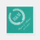 Serviette En Papier Laurel Wreath Monogram Mariage Napkin Turquoise Bl