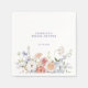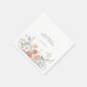 Élégantes serviettes pour shower de mariée à fleurs pastel avec une bordure colorée et des fleurs douces violettes, lavande, pêche et bleues. Parfait pour un shower de mariée dans un jardin avec un thème "l'amour est en fleurs".