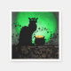 Une silhouette du chat noir de Théophile Steinlen pour le club Le Conversation Noir dans un cadre moderne pour la Saint Patrick avec le chat aux yeux verts, une pleine lune verte, une vigne aux shamrocks et une marmite d'or.