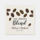 Serviettes en papier tendance et unique pour le mariage de café conçues avec des fèves de café design et la typographie de The Perfect Blend. Personnaliser avec les noms et mariages des mariés et des mariés