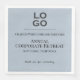 Ces serviettes personnalisées pour événements corporatifs ou fêtes comportent un exemple de logo placé en haut que vous pouvez remplacer par votre propre logo d'entreprise ou de société. Le nom de la société ou de l'hôte est imprimé sous le logo, suivi du lieu de l'événement et de la date indiquée ci-dessous. L'arrière - plan est d'un bleu pâle et poussiéreux. Il est parfait pour un gala, une fête de bureau, un événement caritatif ou une autre célébration d'affaires.
