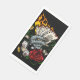 Art vectoriel original d'une main tenant des cartes qui sont en feu. Avec pièces d'or, dés, 8 Ball, Ruban et un rose.