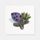 Bestiole mignonne aux ailes violettes prête pour Mardi Gras avec un masque et des perles colorées.