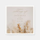 Une serviette mariage de automne, moderne et romantique, avec un bouquet de fleurs séchées neutres dans les tons blé, ocher et rouille. Idéal pour l'heure de cocktail.