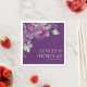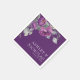 Serviettes de mariage botanique personnalisées en violet avec bouquet floral aquarelle. Le design présente les noms des mariés et des mariés et la date du mariage sous un couvert de mauve violette et de fleurs roses magenta fleuris de vert gris. Parcourez ma boutique - collection de fleurs violettes peluches - pour trouver des articles correspondants.
