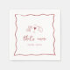 Cette belle conception de mariage italien inspirée comprend un lettrage cursif de style manuscrit accentué par une bordure de ruban ondulé gribouillé de couleur rouge tomate. Des illustrations dessinées à la main de pâtes papillon, de vin et d'un citron sicilien complètent le design pour un look estival de la Côte Amalfitaine. Ces élégantes serviettes de mariage méditerranéen comportent "that's amore" en écriture manuscrite avec les noms des mariés en dessous.