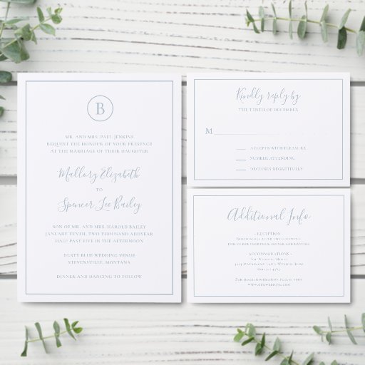Simple Dusty Blue Monogram Traditional WeddingConçu par Cynthia Rinne