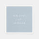 Des serviettes mariages simples en bleu poussiéreux avec vos noms et "et" dans un script élégant avec des swashes. La disposition classique et traditionnelle fait de ces serviettes un endroit idéal pour un mariage formel.