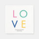 Serviettes mariages modernes pour réception de mariage, fête de fiançailles ou dîner de répétition. Design moderne et minimaliste, design typographique avec "LOVE" dans une gamme de couleurs. Ajoutez vos propres noms et date de votre événement. Veuillez utiliser le bouton Message me ci-dessous pour obtenir de l'aide sur la personnalisation et les demandes spéciales. © Zoe Chapman Design