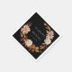 Serviettes de Mariage de automne noir. Ces élégantes serviettes en papier de mariage sont ornées d'aquarelle peinte à la main, de feuilles en terre cuite et orange, de dahlias crème et beige, et de beaux roses couleur rouille sur un arrière - plan noir avec le prénom et la date mariage de la mariée et du marié. Trouvez les articles correspondants dans la collection Black Autumn Romance.