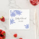 Ajoutez un joyeux ajout à une fête de jardin inspiro douche nuptiale ou la réception de mariage d'été l'heure de cocktail lorsque vous personnalisez ces jolies serviettes Mariage Periwinkle Blue Daisies. Ces élégantes serviettes jetables à fleurs personnalisées sont ornées de fleurs de marguerite bleu perwinkle avec un arrière - plan blanc.