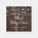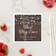 Ces serviettes en papier mariage rustique ornées d'un arrière - plan en bois orné de lampes à cordes sont idéales pour un mariage rustique de campagne, de jardin ou de grange. Personnalisez facilement ces serviettes avec vos détails mariages.