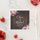 Aquarelle botanique design floral en mauve violet, mûrier, rose et couleur pêche poussiéreuse sur grange foncée arrière - plan, script moderne noms de couple et date de l'événement, moderne et élégant, grand mariage personnalisé serviettes en papier pour mariage botanique rustique de jardin en automne et en hiver. Voir toutes les pièces correspondantes dans la collection.