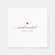 Minuscule serviettes simples de mariage de coeur rouge avec vos noms personnalisés en calligraphie de script élégante à la date de votre célébration.