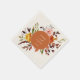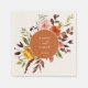 Feuillage rustique d'automne et cadre floral, serviettes en papier personnalisées. Le modèle de style design moderne fournit des lignes pour les noms et la date sur cadre rond orange brûlé.