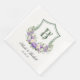 Ces magnifiques serviettes de diner aquarelle avec une crête avec des fleurs violettes et blanches multicolores et une verdure naturelle, les initiales de la mariée et du marié et leur date de mariage seraient parfaites pour votre réception de mariage. Elles sont traditionnelles et classiques tout en étant fraîches, modernes et contemporaines. Ils seront magnifiques sur les tables.