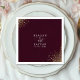 Améliorez votre réception de mariage avec ces serviettes élégantes avec un arrière - plan cramoisi profond et un design de nuit étoilé. Les couleurs riches et les détails chatoyants ajoutent une touche sophistiquée à vos tables, parfaites pour une mariage de nuit ou céleste. Personnalisez avec les noms du couple et la date du mariage pour une touche unique. Une impression de haute qualité assure des couleurs vives et des détails complexes, rendant votre journée spéciale inoubliable.