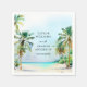 Cette serviette mariage d'aquarelle élégante et magnifique dispose d'une plage, d'un ciel bleu et de palmiers. Le texte combine écriture manuscrite et polices sans serif pour un look élégant et moderne. Il est parfait pour une plage d'été ou un mariage de destination tropicale.