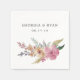 Des serviettes mariages personnalisées ajoutent un charme chic floral à votre cocktail ou à votre réception. Le design présente une poitrine de fleurs de pivoine couleur aquarelle peinte en rose rose, pêche et vert, avec vos noms et date mariage en lettrage noir élégant. Conçu pour coordonner avec notre collection de mariages en fleurs peintes.