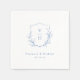 Serviette En Papier Mariage de monogramme bleu simple de crête botaniq