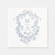 Serviette En Papier Mariage de monogramme de crête florale bleu classi