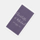 Design de mariage signature violet élégant avec des noms de style signature, ces serviettes d'hôtes en papier moderne peuvent être personnalisées avec vos informations en lettrage blanc chic. Conçu par Thisisnotme©