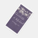 Design mariage de signature violet élégant avec de jolies lampes à cordes et des noms de style signature. Ces serviettes en papier d'hôtes modernes peuvent être personnalisées avec vos informations en lettrage blanc chic. Conçu par Thisisnotme©
