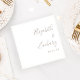 Ces serviettes mariages simples et modernes présentent du texte taupe aligné à la marge droite sur un arrière - plan blanc. Ajoutez les noms du couple dans la calligraphie stylisée d'écriture manuscrite.