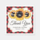 Des serviettes en papier mariage à fleurs sont posées en buffle rouge et sont ornées de tournesols et de lampes à cordes sur un arrière - plan à damiers rouge. Éléments correspondants disponibles.