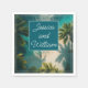 Un design magnifique et parfait pour les mariages de la plage, de la côte, de l'été ou de l'océan, ou un mariage d'île tropicale dans les Caraïbes, ou tout mariage de plage, crée une introduction inoubliable et captivante à votre journée spéciale. L'ajout des noms du couple ajoute une touche unique et chaleureuse dont les clients se souviendront sûrement.