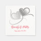 Cette serviette papier est présentée en couleur blanche avec les deux coeurs imprimés, avec un texte en couleur rouge avec des noms d'exemples. La taille du cocktail affichée Customise cet article et change les noms et la date à vous.