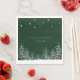 Les serviettes en papier Mariage d'hiver Pins Flocons de neige ont un beau fond vert foncé avec des pins enneigés, des arbres d'hiver blancs, des flocons de neige et un bel effet scintillant suspendu. Personnalisez avec vos informations, personnalisez pour utilisation comme invitation Sweet 16 Winter Wonderland ou carte de Noël.