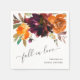 Serviette pour mariage boho floral rustique avec les mots "Tombez amoureux" et un bouquet floral peint à l'aquarelle avec des teintes chaudes et terreuses d'orange brûlé, de terre cuite et de bordeaux profond ainsi que de la verdure. Ces serviettes en papier élégantes avec les riches teintes de l'automne sont idéales pour un mariage d'automne.