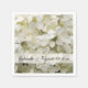Ajoutez une touche de classe à votre soirée de fiançailles, douche nuptiale ou réception de mariage lorsque vous personnalisez l'élégante serviette en papier Mariage blanc Hydrangea Floral. Ces serviettes jetables à fleurs personnalisées et élégantes présentent une photographie florale rapprochée d'une fleur d'hydrangée blanche délicate.