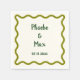 Cette conception est composée d'une bordure ondulée simple, fantaisiste et dessinée à la main. La police utilisée pour le texte principal est décontractée et ludique, avec une qualité manuscrite, lui donnant une touche personnelle et intime. Utilisez cette conception si vous voulez donner la priorité à une image conviviale et accessible à votre mariage plutôt qu'à la formalité.