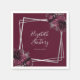 Ces élégantes serviettes mariages modernes présentent un cadre géométrique argenté orné de fleurs bordeaux et argentées sur un arrière - plan bordeaux profond. Ajoutez les noms du couple en écriture manuscrite gris argenté sur une plus légère esperluette bordeaux, ainsi que la date du mariage ci-dessous.