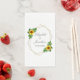Le design présente des tournesols et des feuilles botaniques sur un cadre géométrique imprimé couleur or.