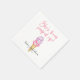 Thème fantaisiste de glace pour serviette en papier de mariage avec illustration aquarelle de boules de glace rose et violet sur un cône gaufrette. Le texte dit "elle a été écoper!" Parfait pour un mariage estival ou une fête de mariage.