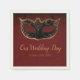 D'élégantes serviettes de décoration mariage à thème, rouge et or, masquées. Personnalisez avec vos propres initiales.