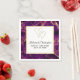 Serviettes de mariée avec une belle motif abstraite au design marbré. Des couleurs violettes riches se mélangent avec des rubans tourbillonnants d'or faux, mélangeant et mélangeant les couleurs tout au long du design. Un carré avec une fausse bordure en feuille d'or superposée avec votre texte personnalisé à l'intérieur. 2 ont joint les coeurs dans un or faux-métallique au-dessus du texte.