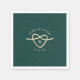 Élégant, moderne, minimaliste vert émeraude serviettes mariages monogrammées avec coeur de corde en faux or et calligraphie simple.