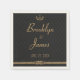 serviettes en papier mariage nautique (ecru) avec ancre dorée et texte personnalisable (vous pouvez ajouter des noms et la date mariage) imprimé sur arrière - plan noir avec motif d'ancre