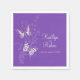 Belle image deux papillons d'art et tourbillon floral en violet, crème et gris serviettes personnalisées en papier mariage. Un grand ajout personnel à vos tables de mariage ou pour des collations et des boissons après le mariage. Personnalisez avec vos noms de mariée et de mariée et votre date de mariage. Parfait pour le thème papillon violet ou mariage de jardin. Autres articles correspondants disponibles. Dessin et design d'art à encre unique par Sarah Trett pour www.mylittleedenwedding.com