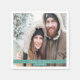 Une serviette pour une soirée de mariage ou de fiançailles élégante - verte, grennerie ou d'hiver. Modèle pour votre photo, un cadre vert avec des modèles pour Vos noms et une date. Lettres blanches.