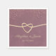Serviettes mariages en prune, simples, élégantes, modernes, avec un coeur de corde en or et monogramme.