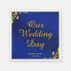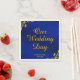 Elégante et simple serviettes mariages à cocktail bleu royal et jaune doré et ornées de motifs floraux. Personnalisez avec votre propre message.