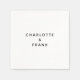 Des serviettes en papier carré blanc avec les noms des jeunes mariés en noir. Tapez ALL CASQUETTES pour obtenir cet effet avec cette police arrondie moderne et design. Customisez l'espacement des lettres au besoin. Ajoutez votre propre monogramme, nom ou photo pour créer un design customisé et personnalisé. Design minimaliste moderne pour votre mariage.