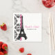 AJOUTEZ LES NOMS DE LA MARIÉE ET DU GROUPE ET LEUR DATE MARIAGE À CES JOLIES ET CHIC PAPIER MARIAGE PARISIEN ET FRANÇAIS NAPKINS AVEC UNE TOUR EIFFEL SUR UN ÉLÉGANT NOIR ET BLANC DOMMASK ARRIÈRE - PLAN FLORAL ET IMPRIMÉ RIBBON LOOK CONÇU DANS UN FUK HOT. CHSIA HUE. CONÇU PAR CHRISSY H. STUDIOS, LLC. Tous droits réservés.